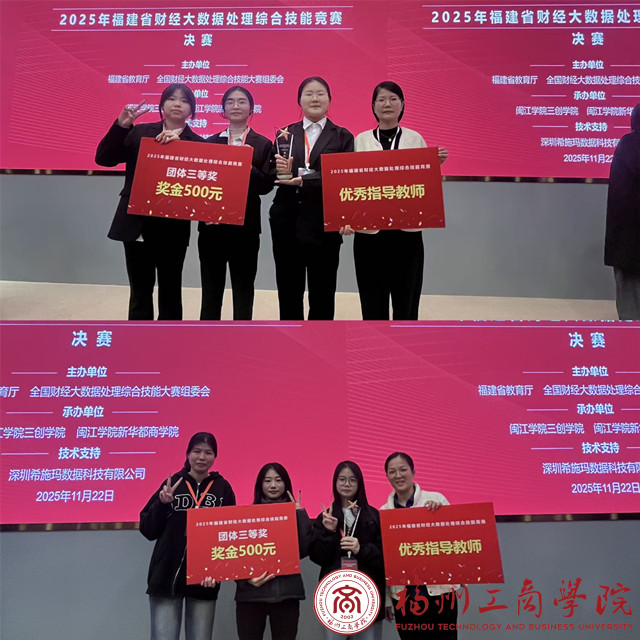 2025年福建省财经大数据处理综合技能大赛落幕,福州工商学院四队斩获佳绩